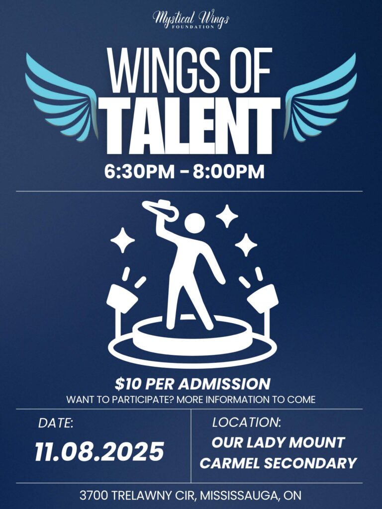 Join us for the first ever Wings of Talent on Saturday, November 8, 2025 from 6:30 pm – 8:00 pm at